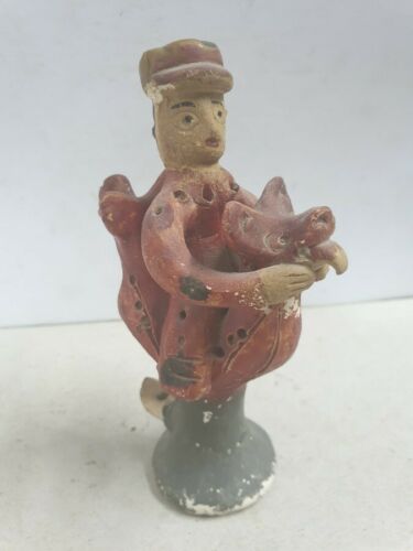 ANTIQUE PORTUGUESE POTTERY CERAMIC CLAY WHISTLE TOY FOLK TOOTHPICK
