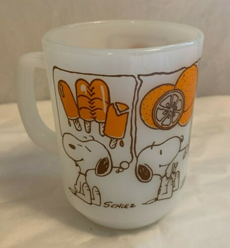 Title (ebay affiliate link): 1958 Peanuts Snoopy "Sweet Dreams" Mug Anchor Hocking Fire King Milk Glass