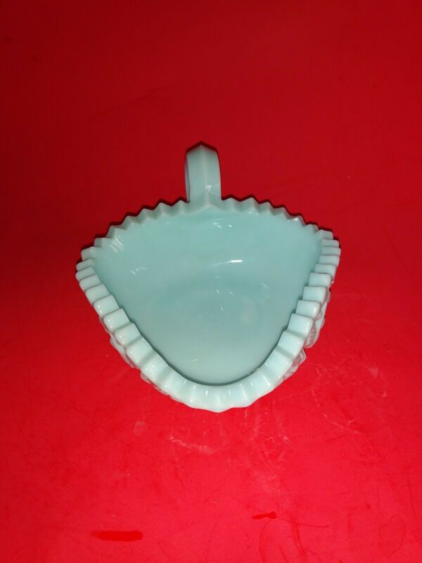Aqua Blue Milk Glass Tricorner Nappy Handled Candy Dish