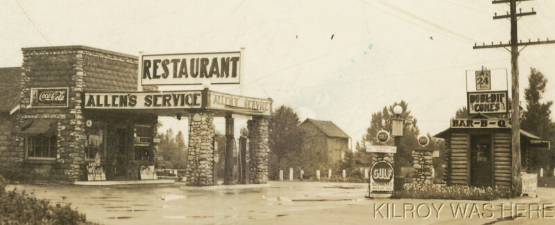 Title (ebay affiliate link): 1939 RPPC Allen''s Gas Station Gulf Ice Cream Restaurant Coca Cola Manton Mich