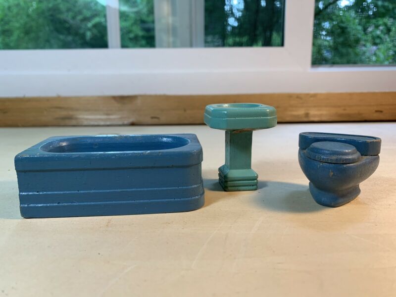 Title (ebay affiliate link): VINTAGE 3 PC LOT STROMBECKER BATHROOM DOLLHOUSE FURNITURE
