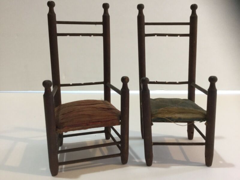 Title (ebay affiliate link): Baxter Mfr. 2 Primitive Miniature Antique Wooden Chairs Brought On Mayflower
