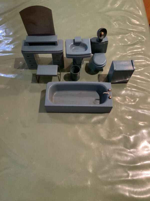 Title (ebay affiliate link): Vintage 8 Piece Dollhouse Bathroom Furniture From Marshall Field & Co. 1941