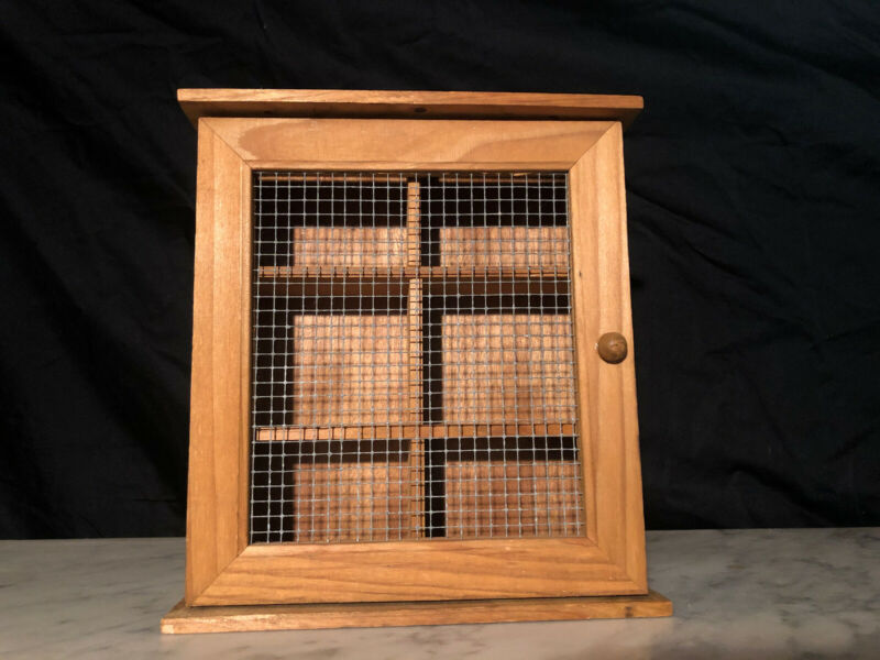 Title (ebay affiliate link): VINTAGE RUSTIC WALL MOUNTED SMALL 3 SHELF WOOD CABINET WITH WIRE SCREEN DOOR
