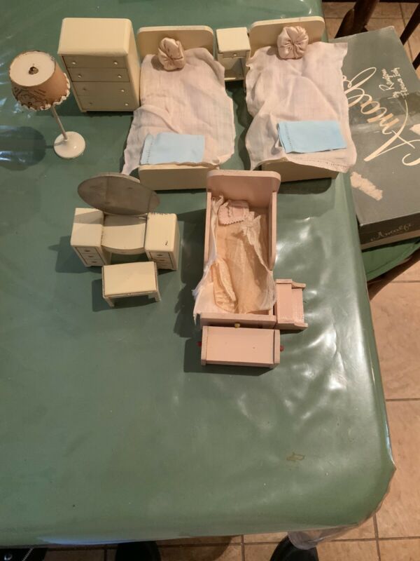 Title (ebay affiliate link): Vintage 9 Piece Bedroom Dollhouse Furniture-Marshall Field & Co. 1941