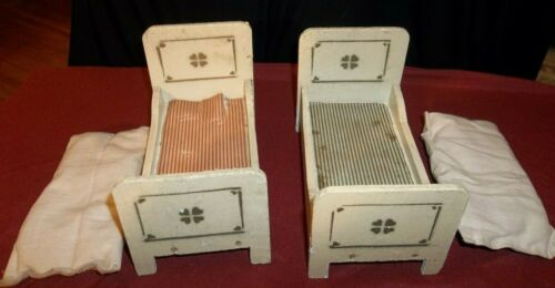 ANTIQUE VINTAGE GOTTSCHALK DOLLHOUSE FURNITURE SINGLE BEDS MADE IN GERMANY