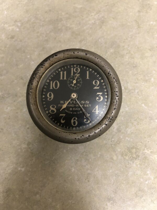 Title (ebay affiliate link): Antique Early 20thC Keyless Auto Clock Co. Rim Wind Set 8 Day Car Clock-Running