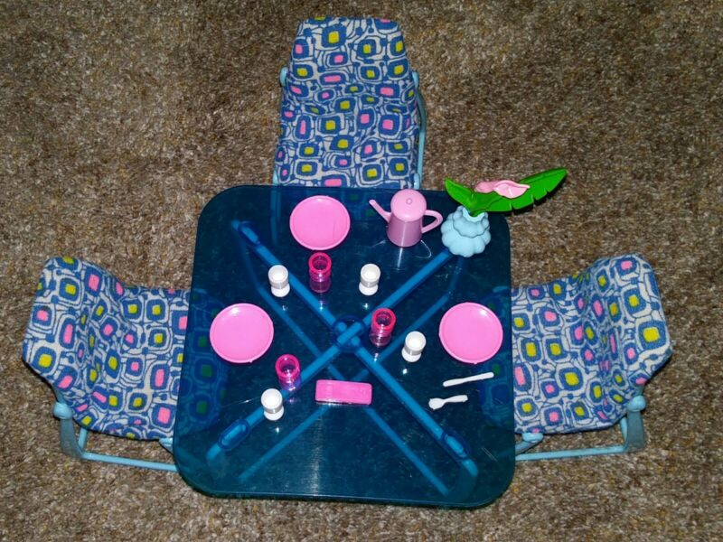 Vintage Mattel 1977 Barbie Dream Furniture Blue Table Chairs Plates Cups Lot