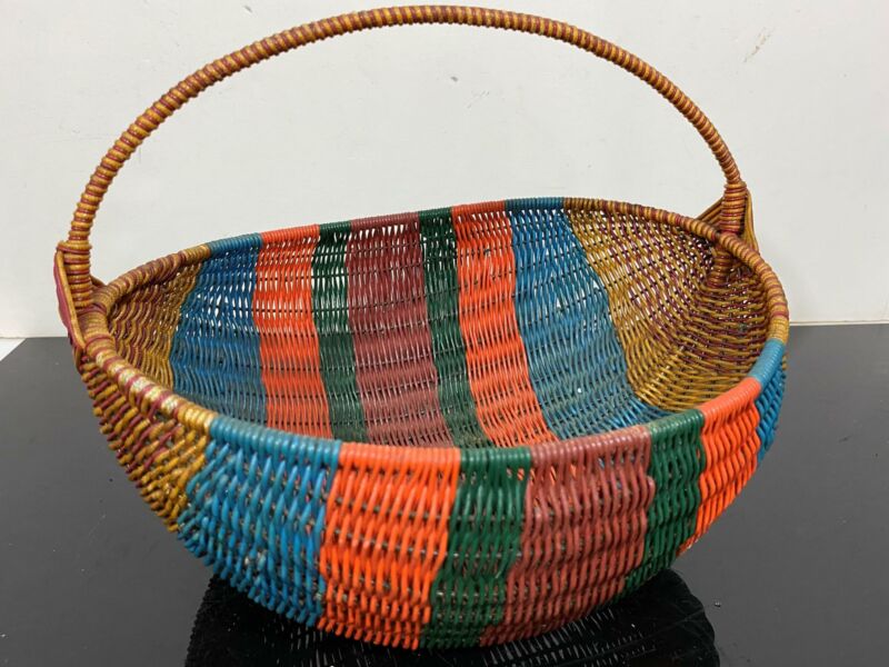 Vintage Woven Wire Multi-Color Rainbow Spring Harvest Flower Herb Basket