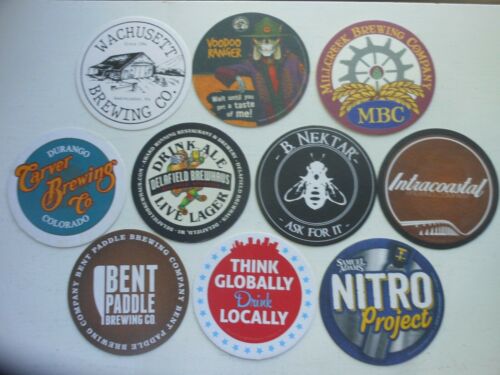 10 CRAFT BEER COASTERS-B. NEKTAR,DELAFIELD,CARVER,BENT PADDLE,LOST BOROUGH,INTRA