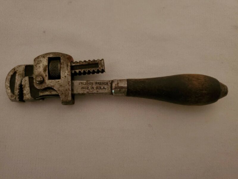 Title (ebay affiliate link): VTG STILLSON Pipe Wrench #6 Wood Handle USA