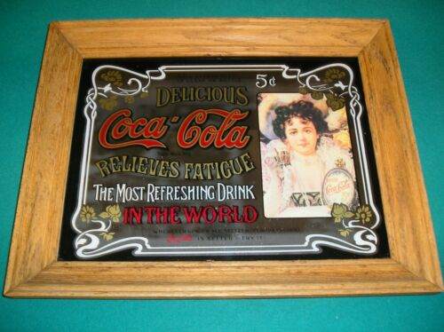 VINTAGE COCA COLA - ANTIQUE STYLE 5 CENTS 11 x 14 MIRROR BAR SIGN - WOOD FRAME