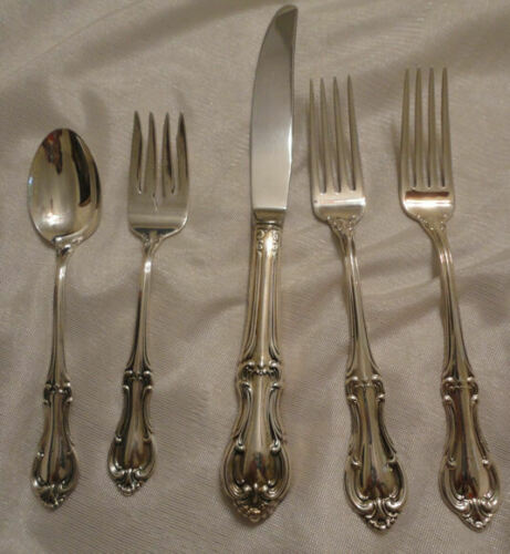 Title (ebay affiliate link): International Sterling Silver JOAN OF ARC 5 Pieces, 3 Forks, Knife, Spoon Unused