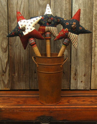 Title (ebay affiliate link): 3 HANDMADE PRIMITIVE AMERICANA PATCHWORK STARS WOOD BOBBINS POKES PATRIOTIC