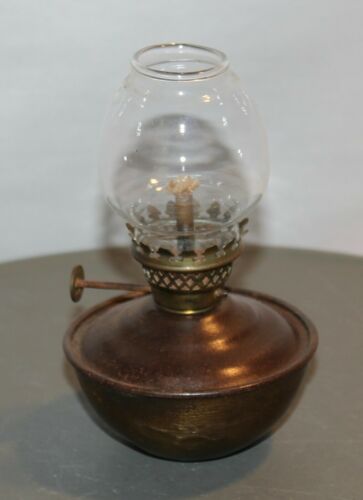 ANTIQUE Miniature BRASS OIL LAMP Original Chimney