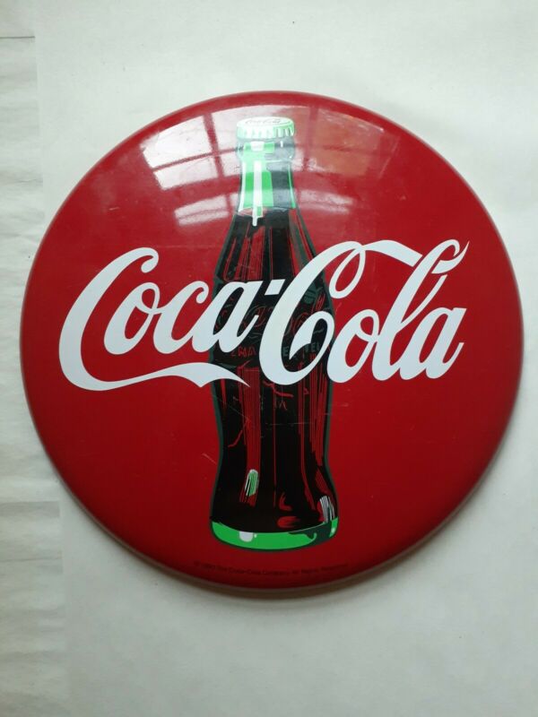 Title (ebay affiliate link): Vintage 1990 Coca-Cola Company Classic Red Metal Coke Button Sign 12" Round Tin