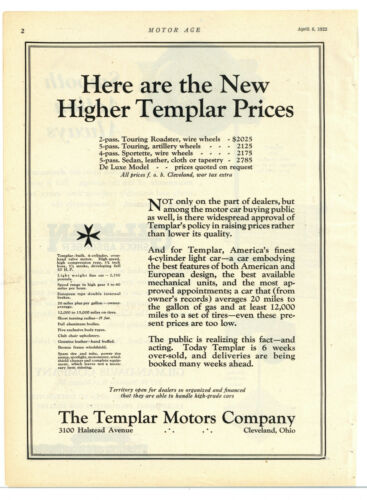 Title (ebay affiliate link): 1922 Templar Motors Company Advertisement: Halstead Ave., Cleveland, Ohio