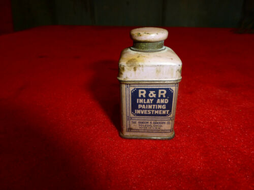 Title (ebay affiliate link): ANTIQUE DENTAL 2" TIN: EARLY VERSION " R & R INLAY AND PAINTING INVESTMENT "
