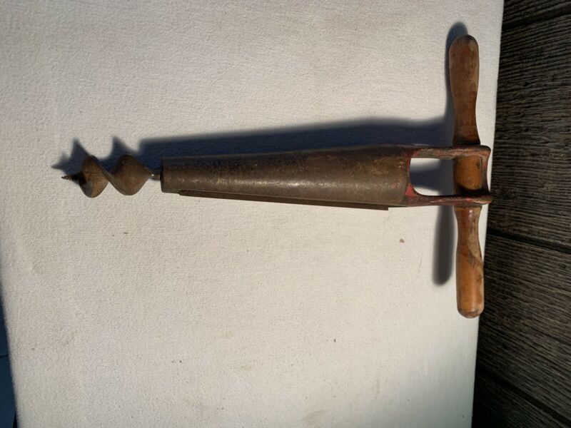 Title (ebay affiliate link): VTG Antique Wood Handle Barn Beam Auger Drill Old Tool Decor Man Cave Primitive