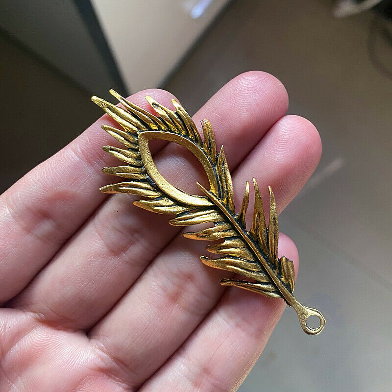 Title (ebay affiliate link): 2pcs 72x27mm Feather Charms antique gold tone Jewelry Making