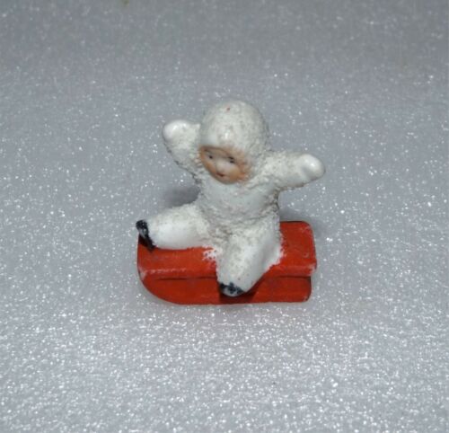 ANTIQUE GERMANY BISQUE FIGURE Christmas Child Sled VTG GERMAN SNOW BABY FIGURINE