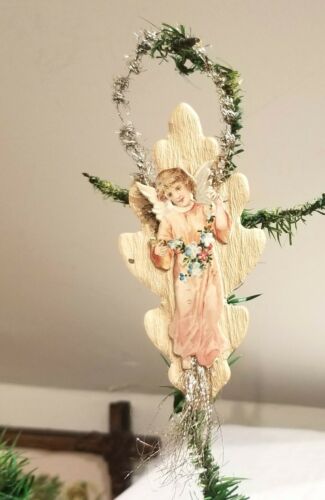 Title (ebay affiliate link): Angel on Paper Oak Leaf. Early 1900s Miniature Paper & Tinsel Xmas Orn. German