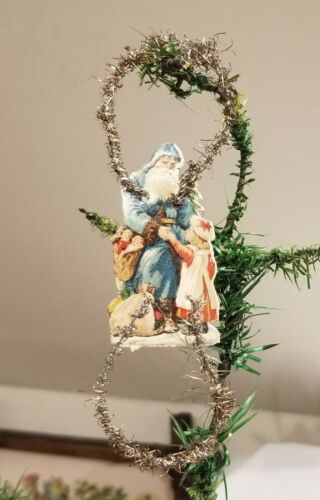 Title (ebay affiliate link): Girl reaching for Santa''s Hand. Early 1900s Miniature Paper & Tinsel Xmas Orn.