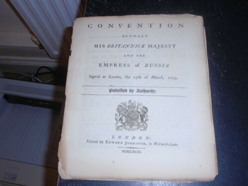 Title (ebay affiliate link): 1793 Convention between His Britannick Majesty & the Empress of Russia, Pamphlet