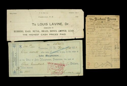 Title (ebay affiliate link): Fredericton New Brunswick trio of c.1900 Merchant receipts etc Lavine Macpherson