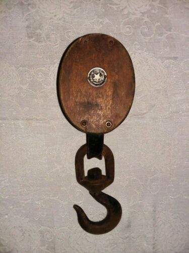 Title (ebay affiliate link): Vintage Boston & Lockport Block Co Wood Block & Tackle Pulley With Hook Double