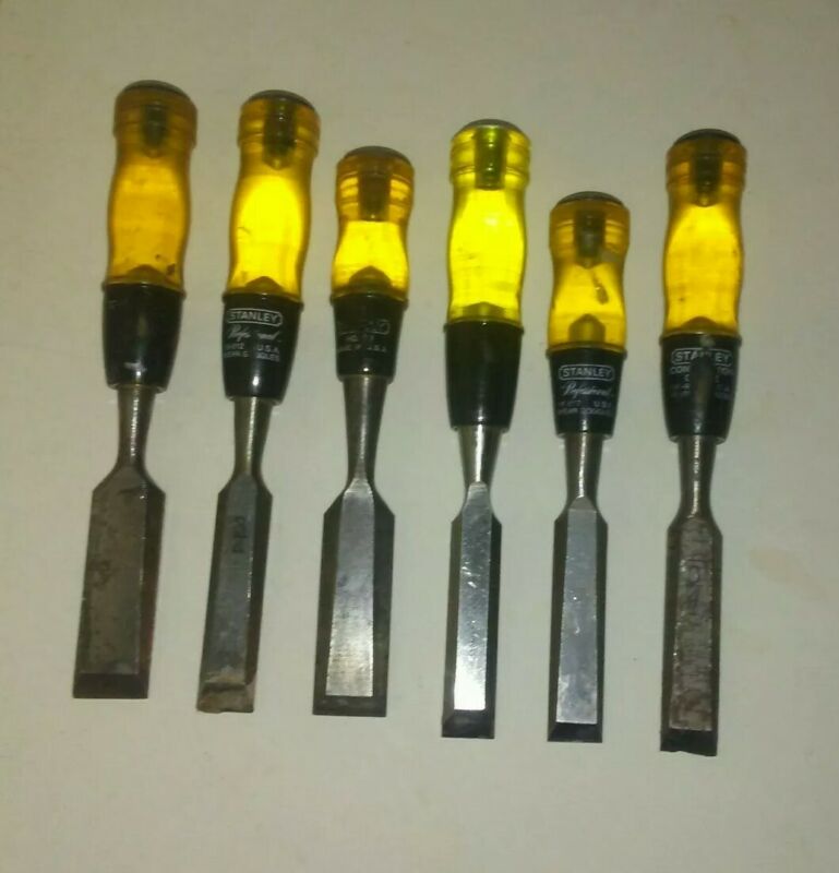 Title (ebay affiliate link): Vintage 6pc Assorted Stanley Chisels wood woodworking professional contractor