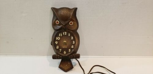 VINTAGE RETRO OWL ELECTRIC CLOCK INGRAHAM CO 90671 WALL NOT WORKING PARTS OLD