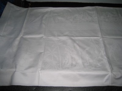 DAMASK TABLECLOTH with NATIVITY SCENE CHRISTMAS c.1900