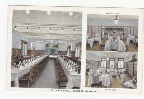 Title (ebay affiliate link): ST. JAMES HOTEL IRONWOOD, MICHIGAN DINING ROOM POSTCARD NEW