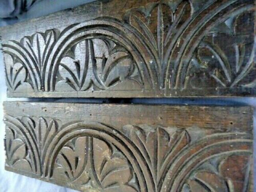 Title (ebay affiliate link): TWO SMALL 17TH CENTURY OAK CARVED NULLED CARVING COFFER RAILS