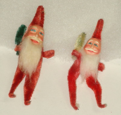 Vintage Chenille Japanese Santas Christmas Ornaments!