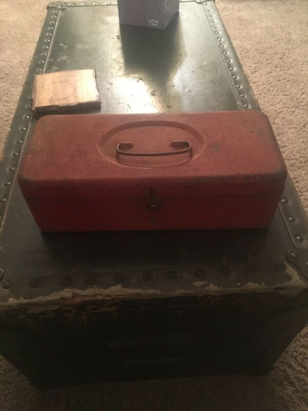 Title (ebay affiliate link): Vintage Small Metal Toolbox or Tackle Box RED