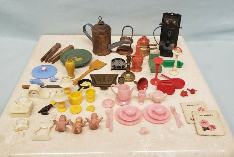 Title (ebay affiliate link): Vtg Dollhouse Miniature Furniture Toys Renwal & Irwin, Durham Plastic Metal Wood