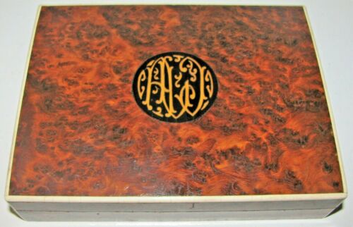 Early Antique Playing Card Wood Box Burled Inlaid Ebony