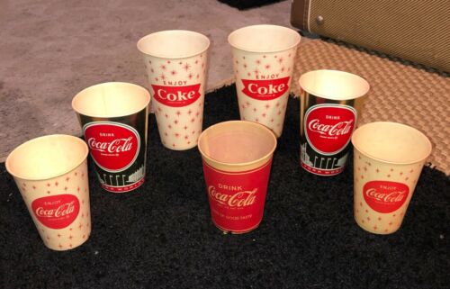 7 Vintage Coke Coca Cola Waxed Paper Cups NEW OLD STOCK