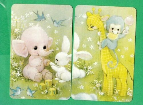 Title (ebay affiliate link): 2 VINTAGE PLAYING SWAP CARDS 1970''S SARAH KAY ELEPHANT GIRAFFE BABY TOYS