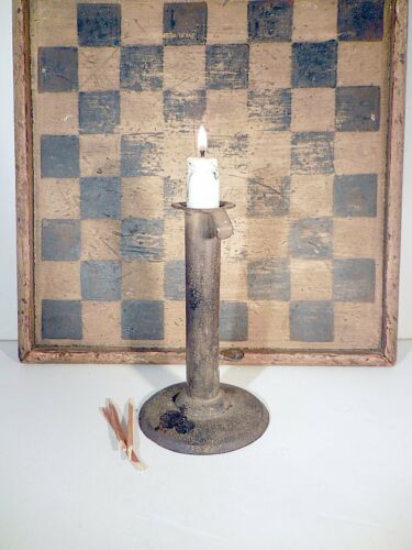 Title (ebay affiliate link): AAFA Signed 19th c Push Up Hogscraper Candlestick Antique Iron Candle Holder