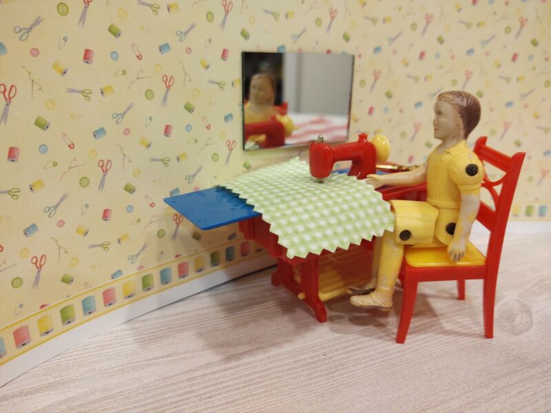 Title (ebay affiliate link): Vintage Renwal Sewing Machine Chair And Doll Miniature Dollhouse Furniture