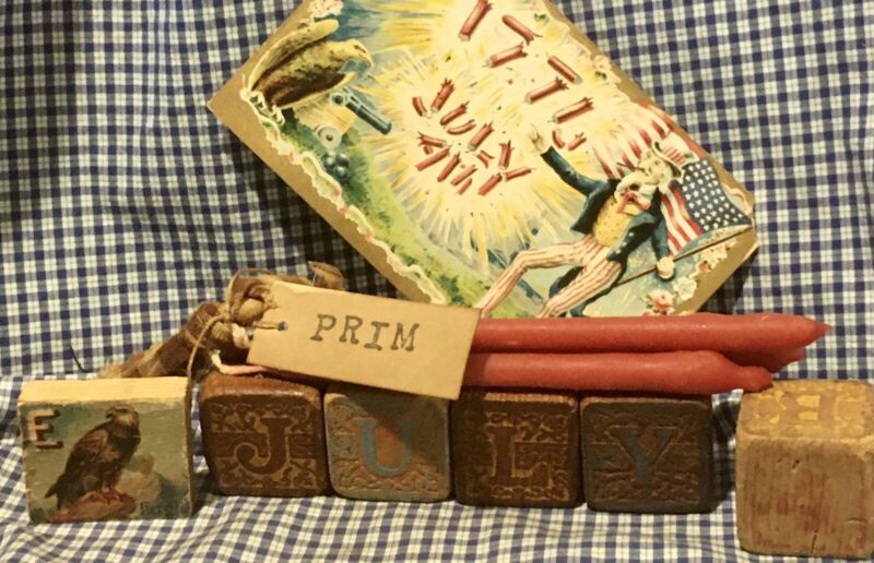 Title (ebay affiliate link): Antique 4th of July Flag Postcard w Old ABC Wood Toy ~JULY~ Eagle Blocks Lot