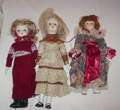 Title (ebay affiliate link): Lot of 3 Porcelain Dolls 1 Special Edition Antique Heri