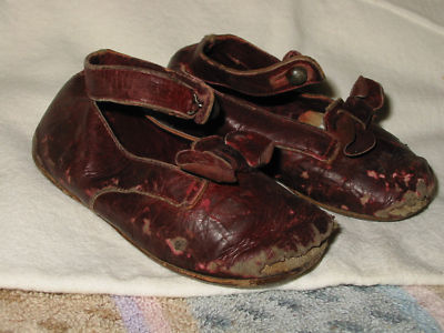 Antique Vintage Girl Doll Burgundy Ankle Strap Shoes