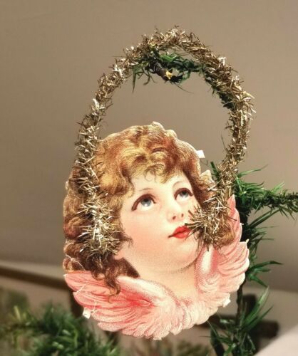 Title (ebay affiliate link): Angel with Pink Wings. Early 1910 Miniature Paper & Tinsel Xmas Orn. German