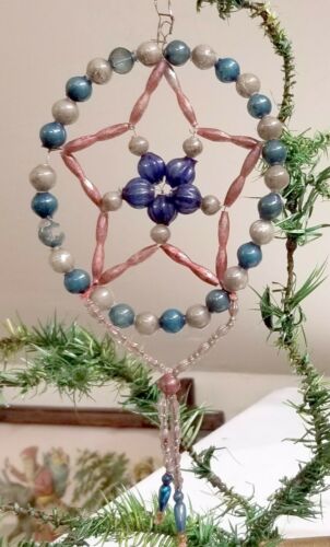 Title (ebay affiliate link): Red Star in Blue & Silver Bead Circle. Early 1900s Czechoslovakian Bead Orn.