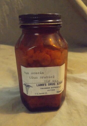 Vintage Gum Arabic Apothecary Pharmaceutical LAMB''S DRUG STORE .Duraglass Jar