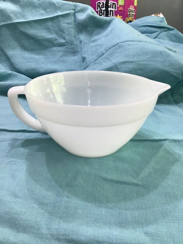 Title (ebay affiliate link): FIRE-KING OVEN WARE WHITE BATTER MIXING BOWL - with POUR SPOUT AND HANDLE